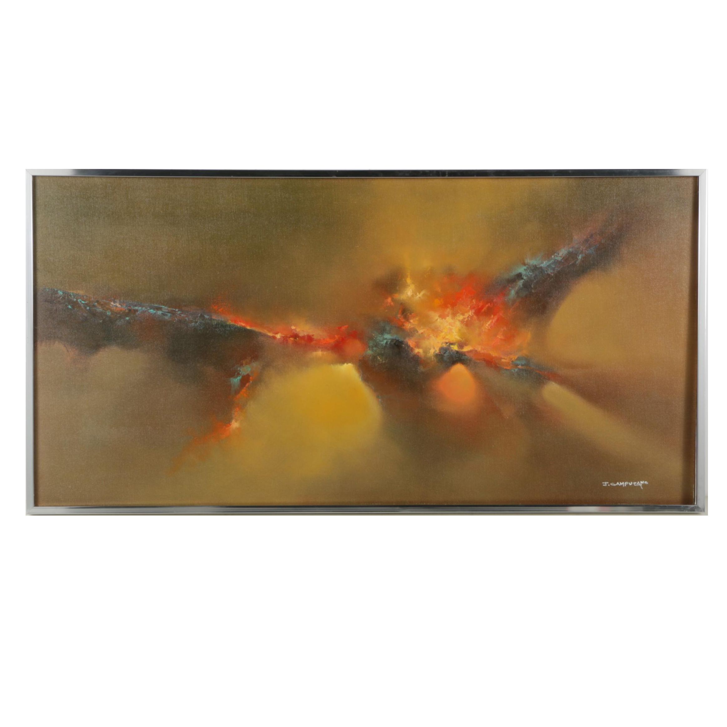 Mid Century Abstract Oil Painting By Jose Luis Campuzano Modernism