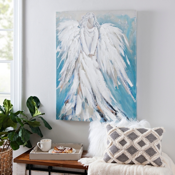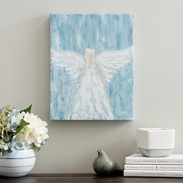 Kirkland Large Christmas Angel Blue Stained Glass Window Panel