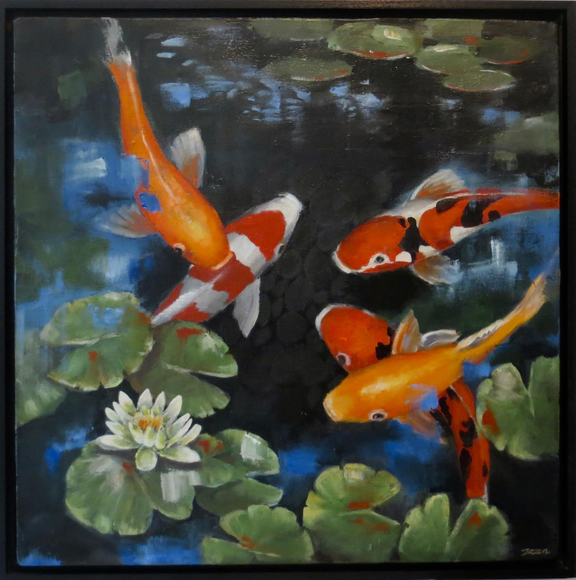 Allergy To Fish Oil Koi Fish In Lily Pond Oil Painting On
