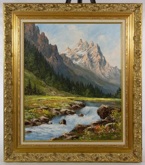 Antique Kurt Moser Listed Artist German Mountain Landscape Oil