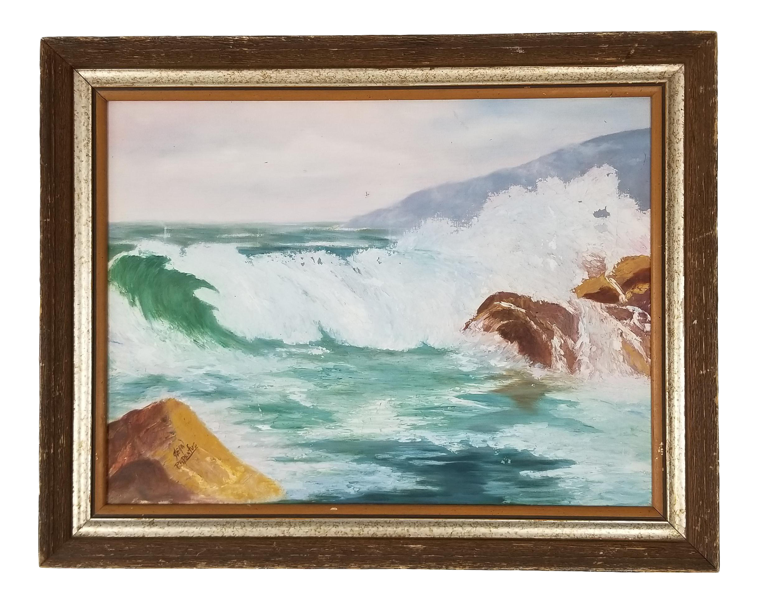 Original Oil Painting Showing Waves In Ocean Or Sea On Canvas