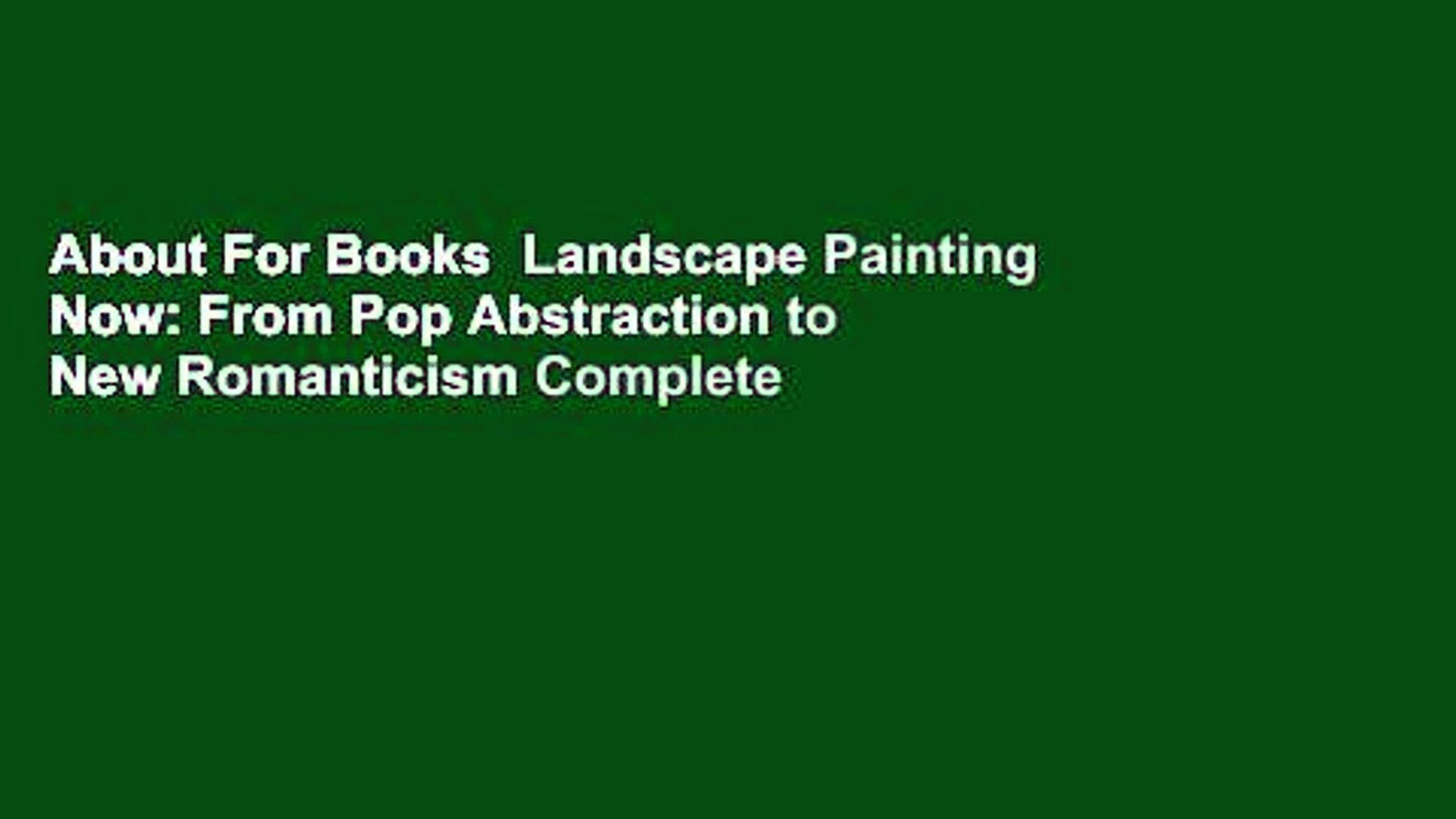 Landscape Painting Now From Pop Abstraction To New Romanticism