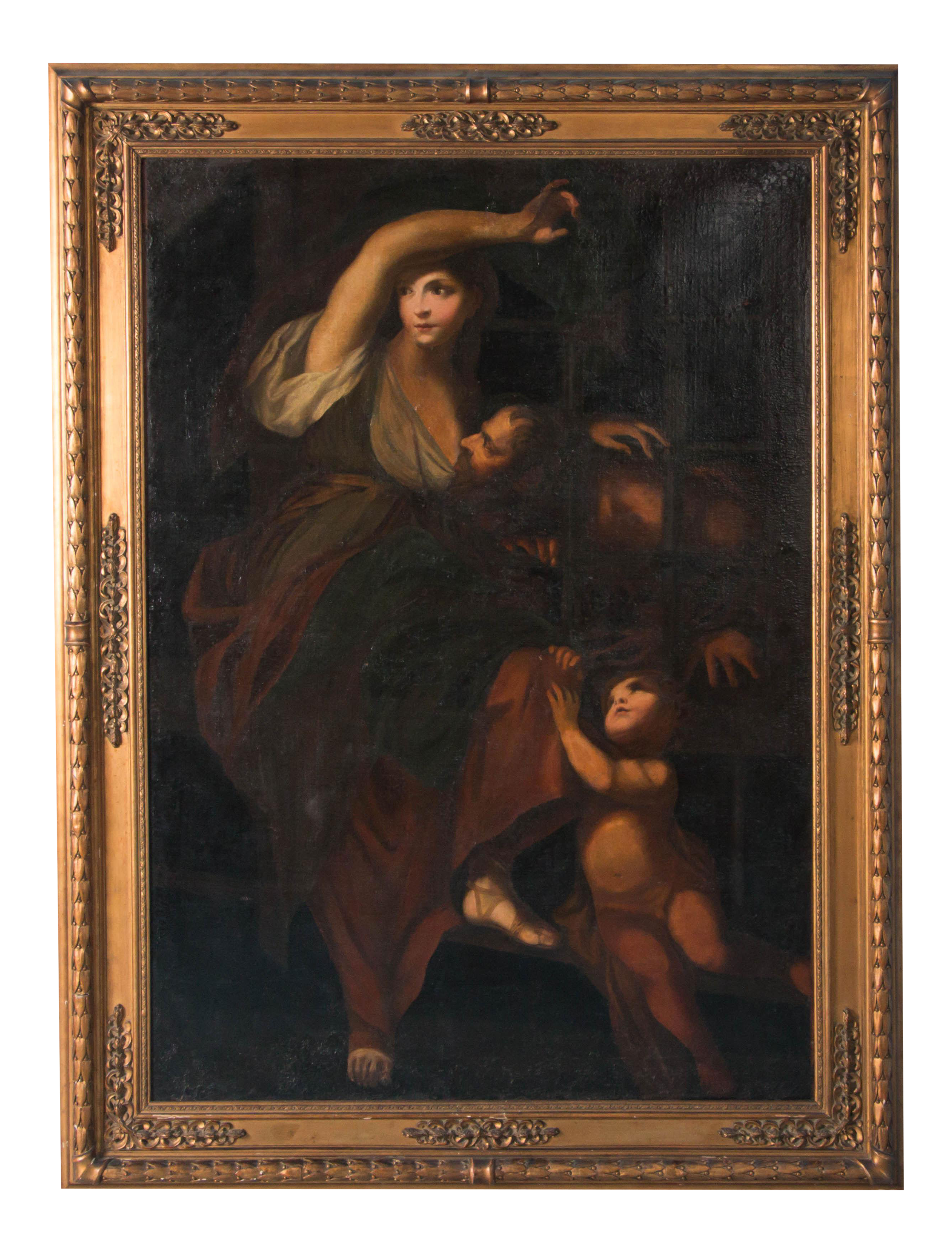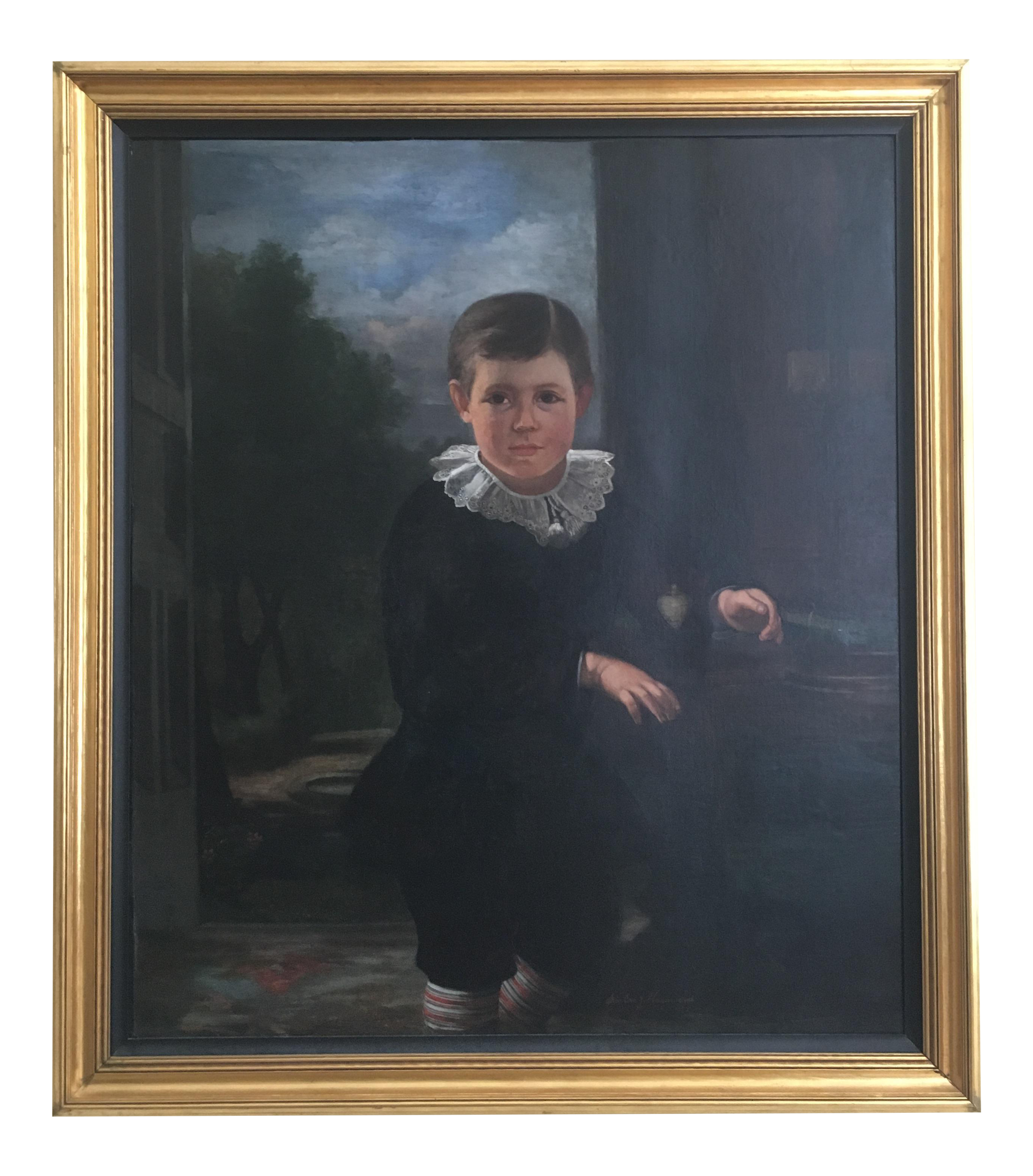 Fine Large Antique 19thc French Oil Painting Of Young Girl Boy