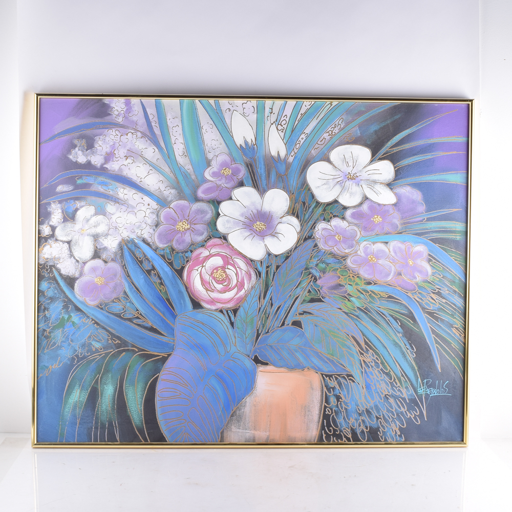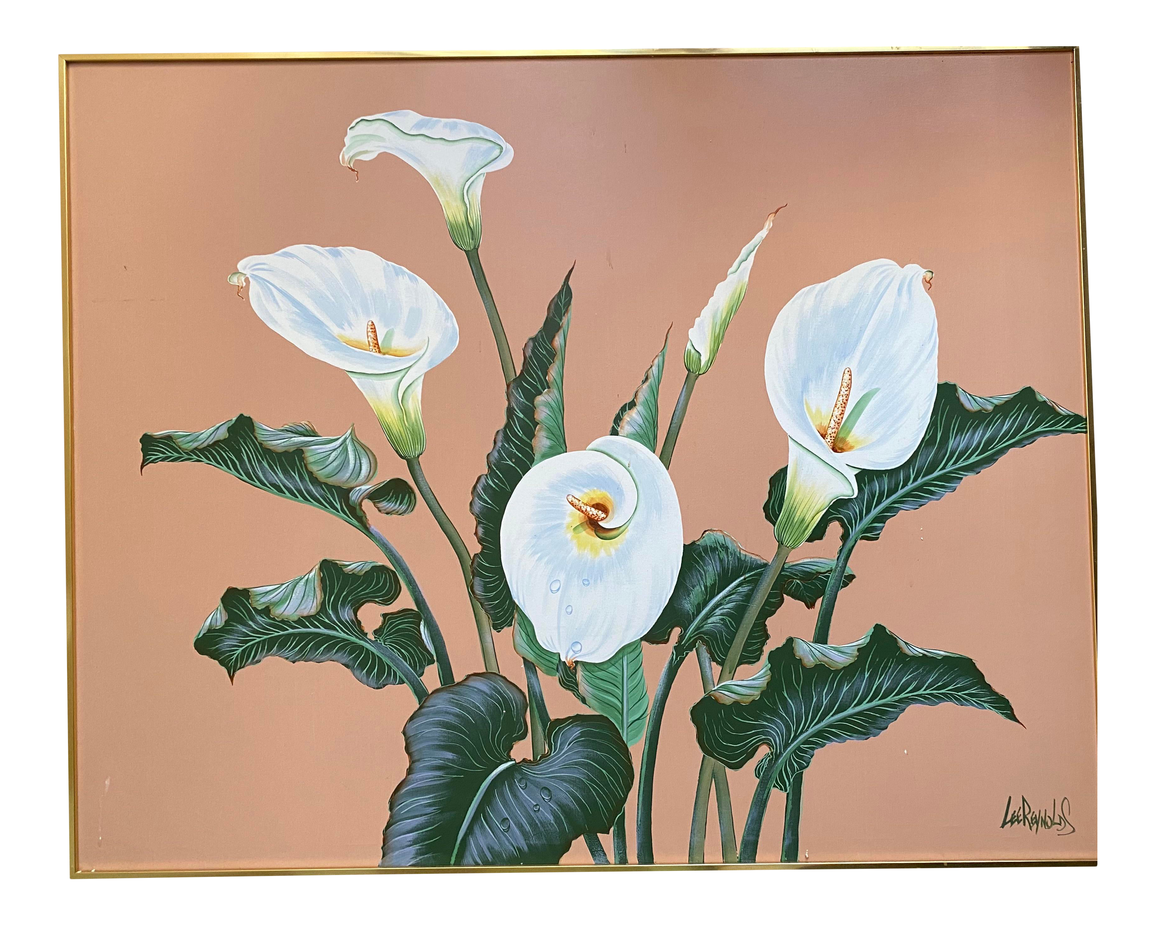 Large Mid Century Hollywood Regency Floral Painting By Lee