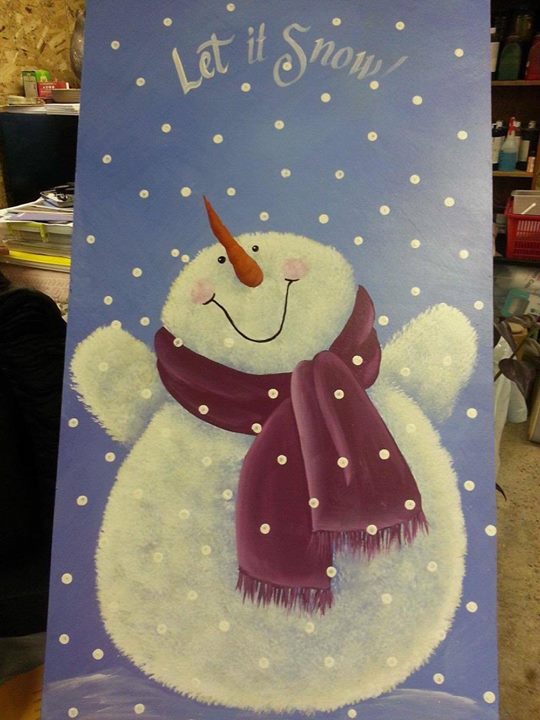Snowman Let It Snow Acrylic Canvas Painting 16x12 Etsy