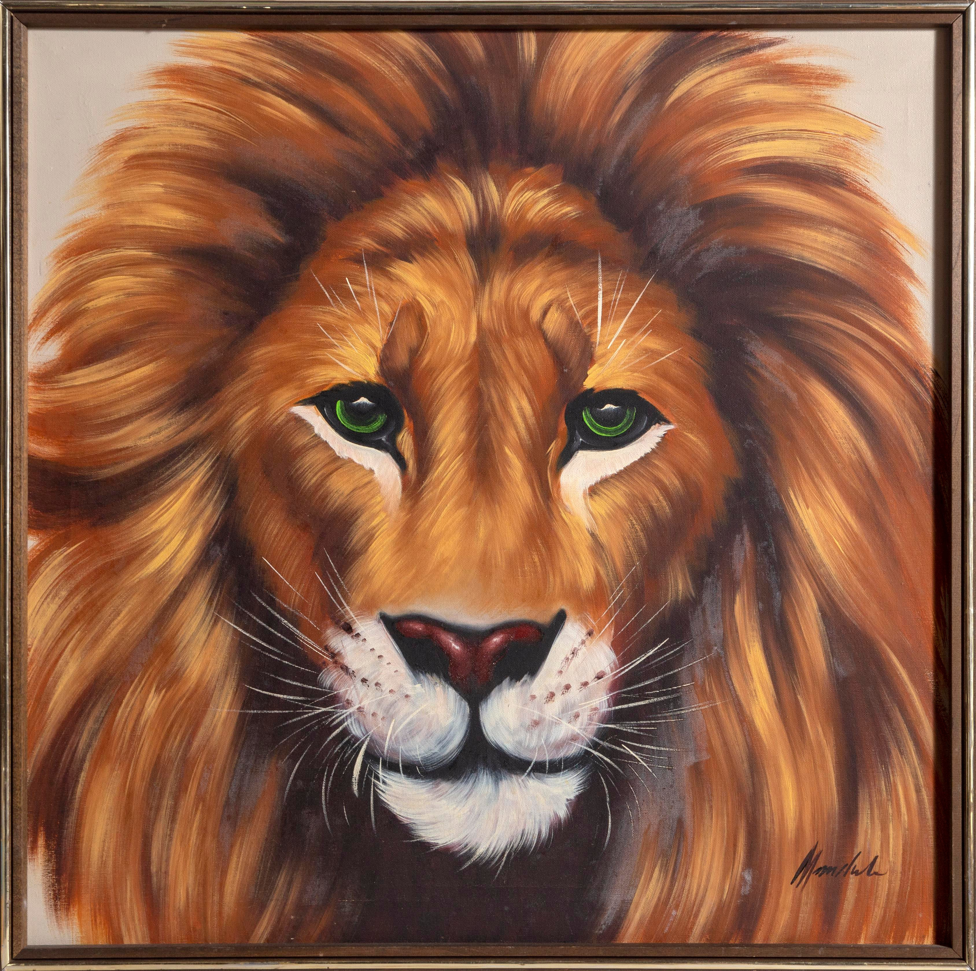 Mkhert Abstract Animal Young Asian Lion Face Oil Painting