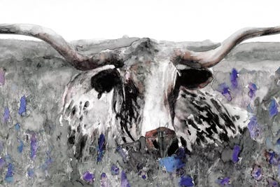 Longhorn Bluebonnets Limited Edition Giclee On Canvas Featuring