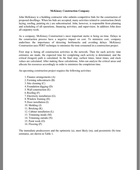 Solved Mckinsey Construction Company John Mckinsey Is A B