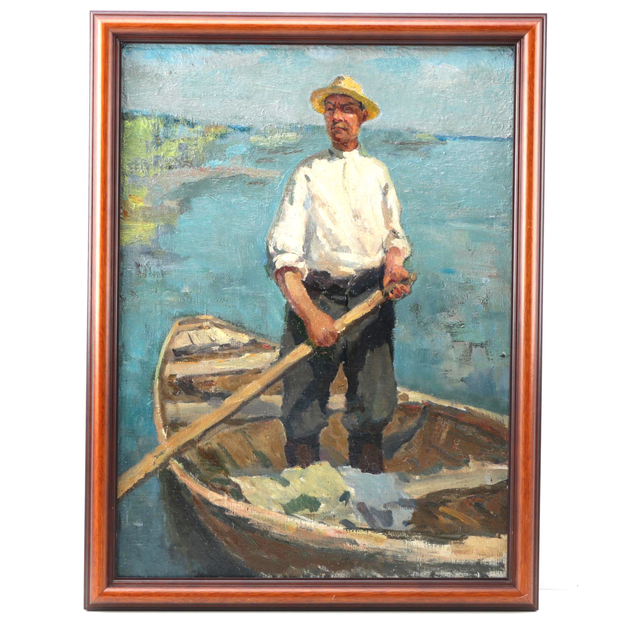 Impressionist Watercolor Painting Of A Man In His Boat Chairish