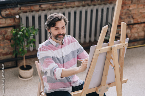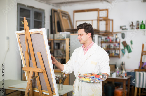 Man Doing Abstract Painting Oil Painting Artist Palette Painter