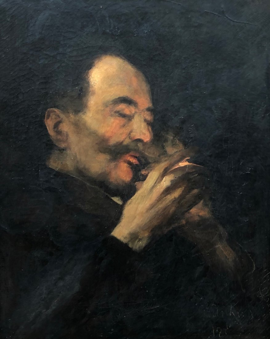 Gruff Man With A Cigar Oil Painting 1950s John Grabach 1910209348