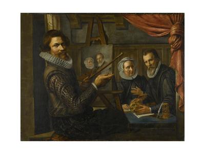 Painter In His Studio Painting The Portrait Of A Married Couple