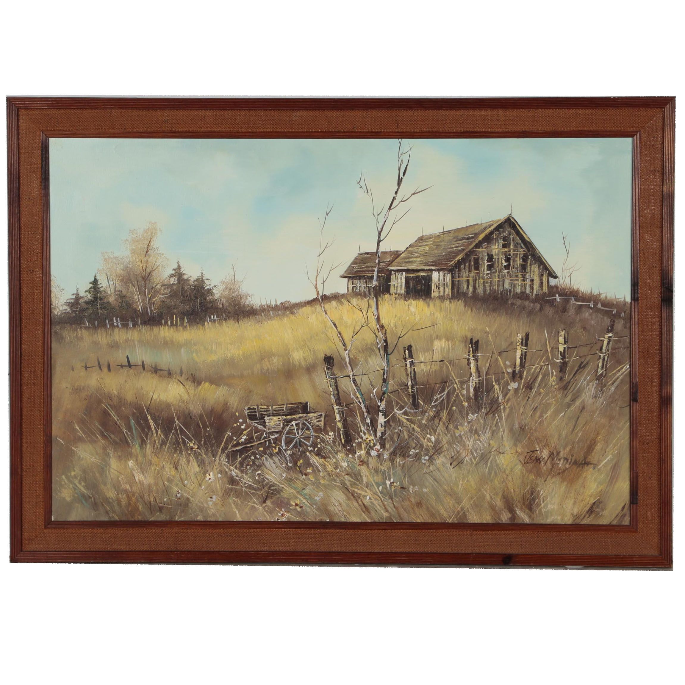Used Awesome Country Barn Landscape Oil Painting Art By J Medina