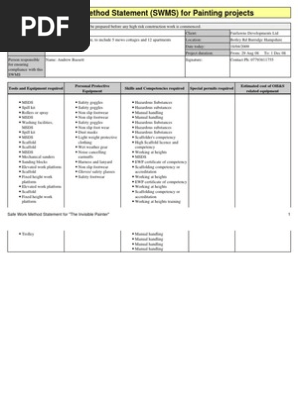 Method statement for spray painting. Be careful of overspray. This safe work method statement for painting is developed for general purpose and can be customized as required by your project. Leave to curedry for 8 hours before applying the next coat. Site induction and toolbox talk this method statement confirmation of fire assembly points and warning sounds.
