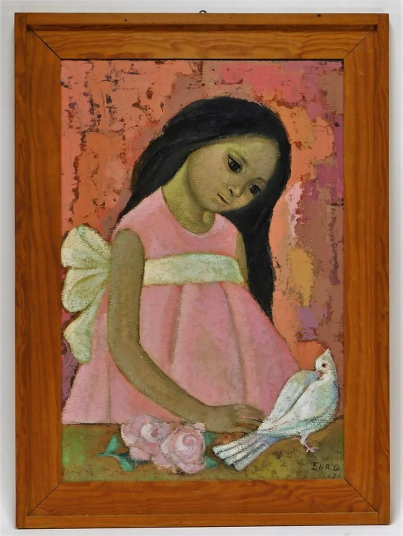 Jesus Helguera Painting Of A Mexican Calendar Girl With Braids