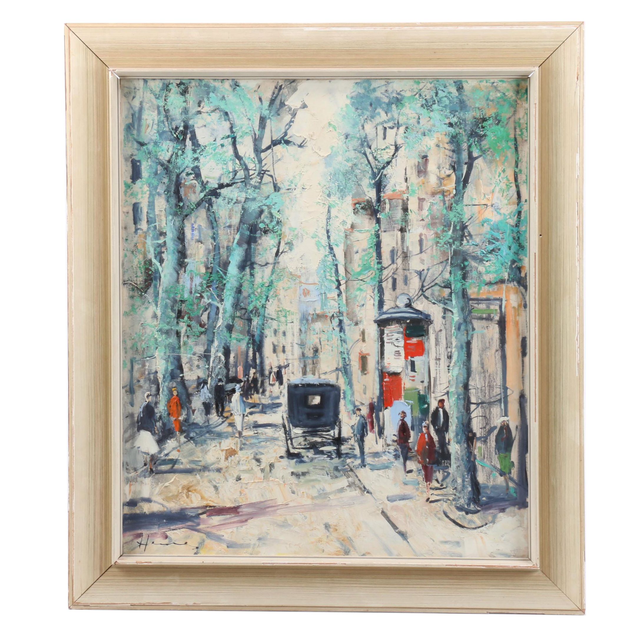 French Mid Century Oil Painting Of Bar Scene