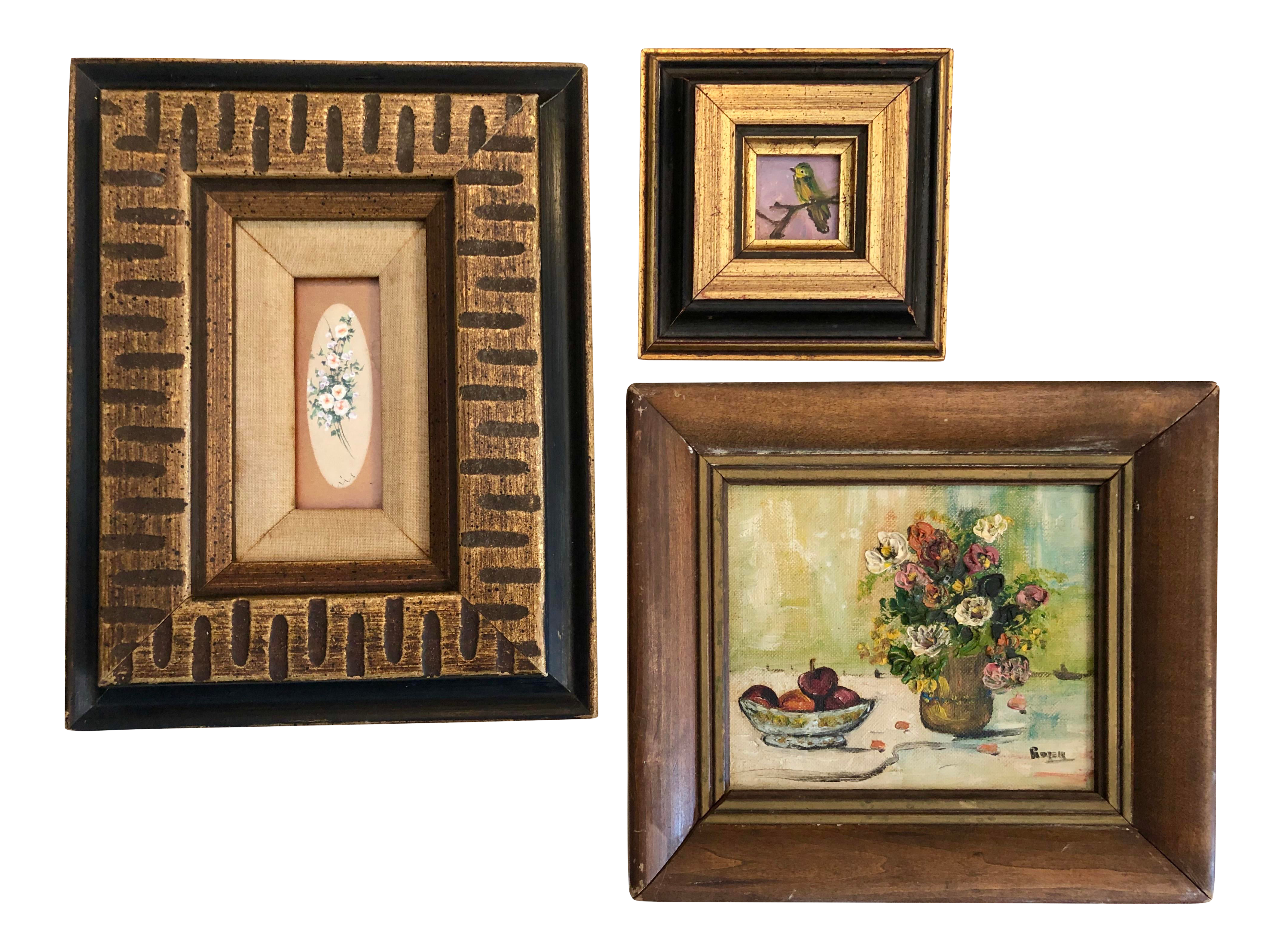 Vintage Miniature Oil Painting Floral Signed Tere Teve Gilt Frame