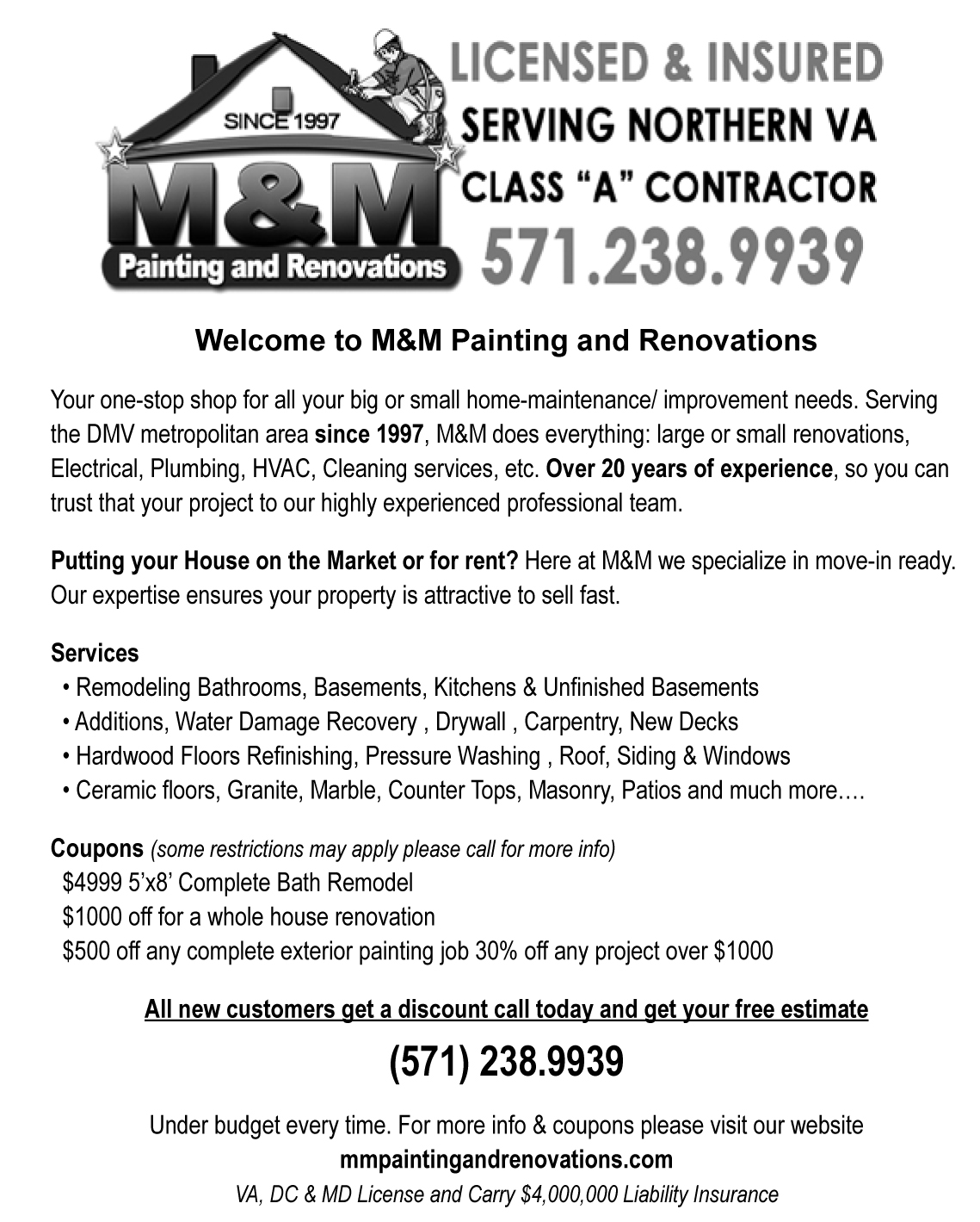 M M Painting And Renovations Arlington Va Get A Bid Buildzoom
