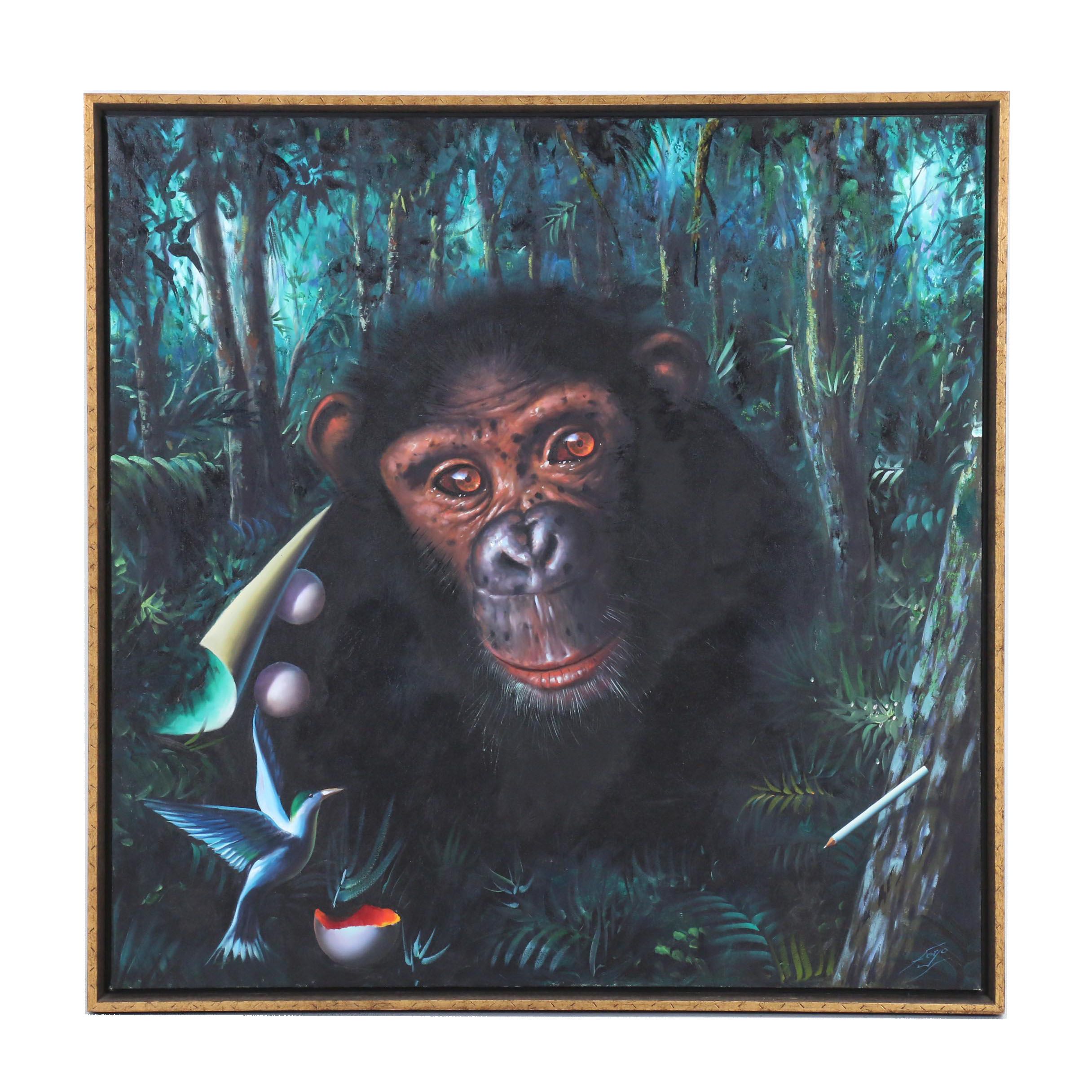 The No Monkey Business Chimpanzee Painting Art Etsy