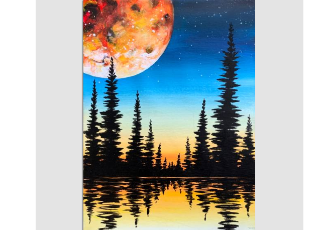 Crow Raven Silhouette Painting Full Moon Trees Original Artwork
