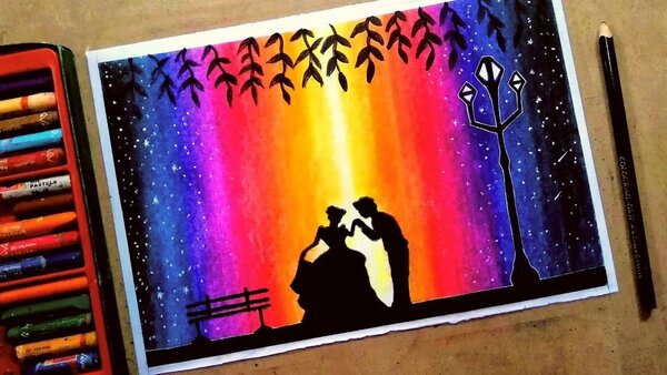 How To Draw Moonlight Birds Drawing With Oil Pastels Very Easy