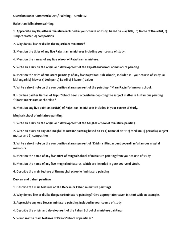 Hindu Art And Miniature Painting Answers Pdf Quiz