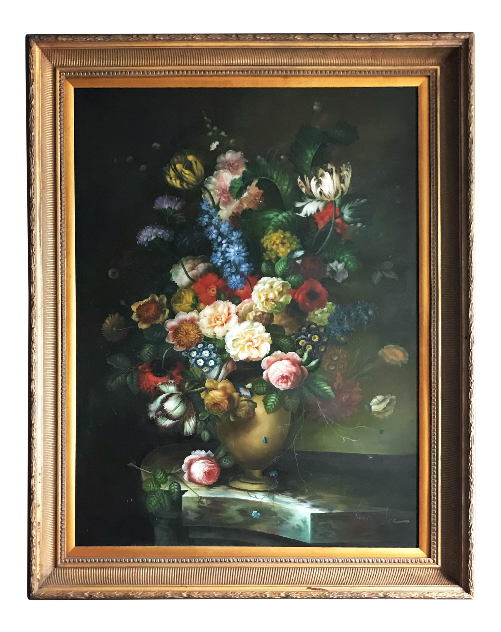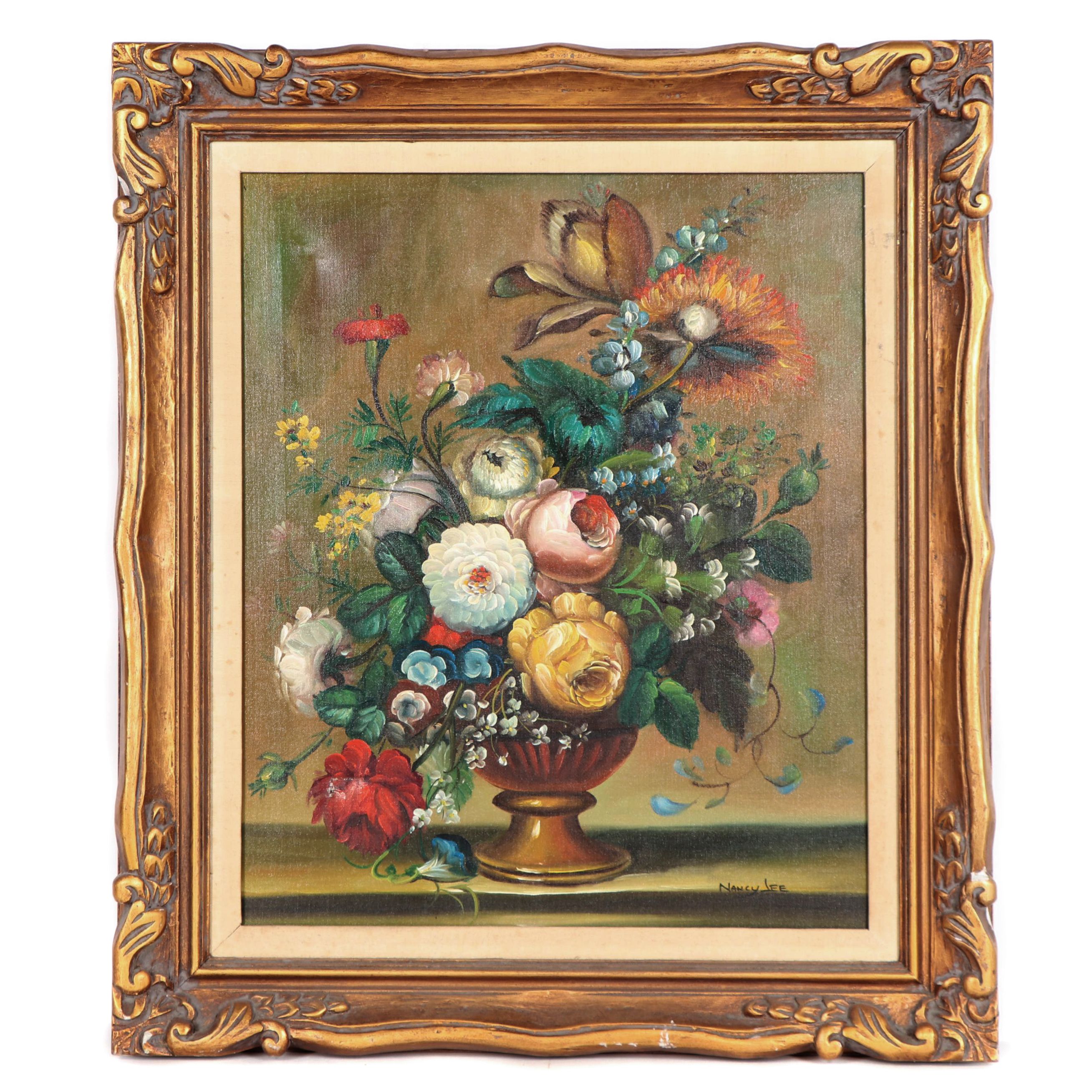Nancy Lee Oil Painting Daisy Bouquet Of Daisies Signed Ornate 13 X