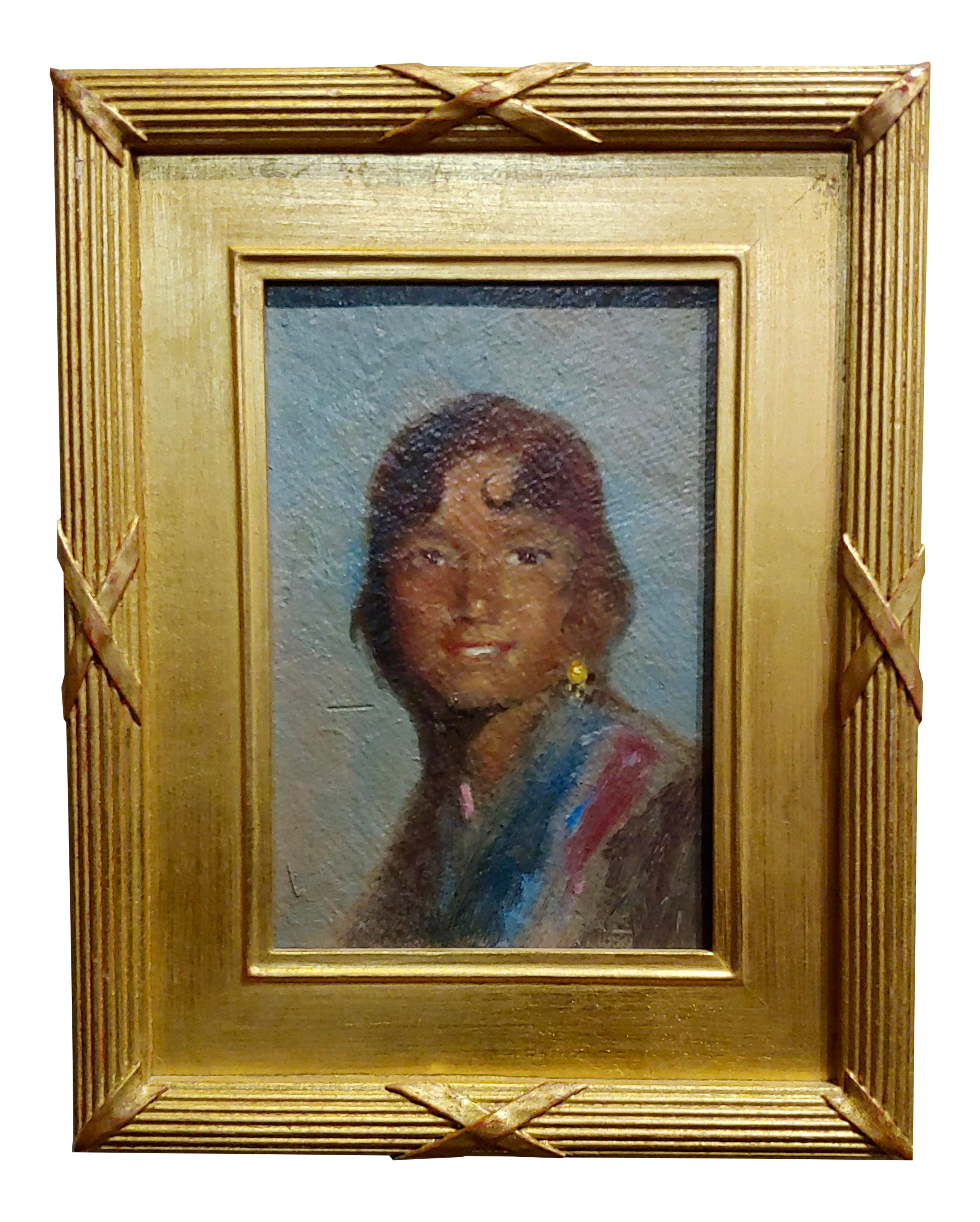 Portrait Of A Native American Young Woman Oil Painting Signed