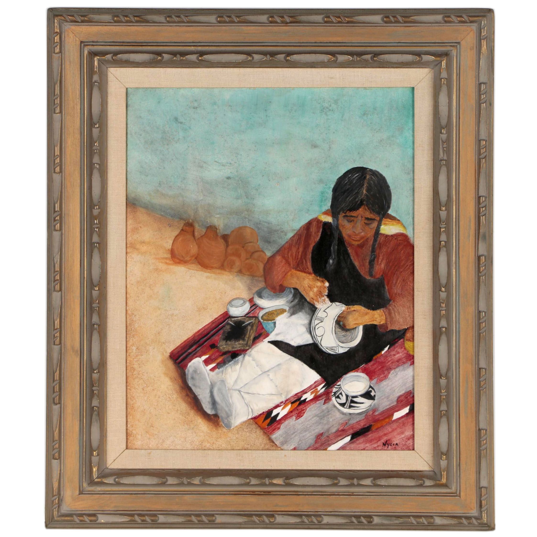 Vintage Original Oil Painting Elderly Native American Woman