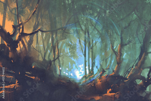 Night Dark Forest Painting