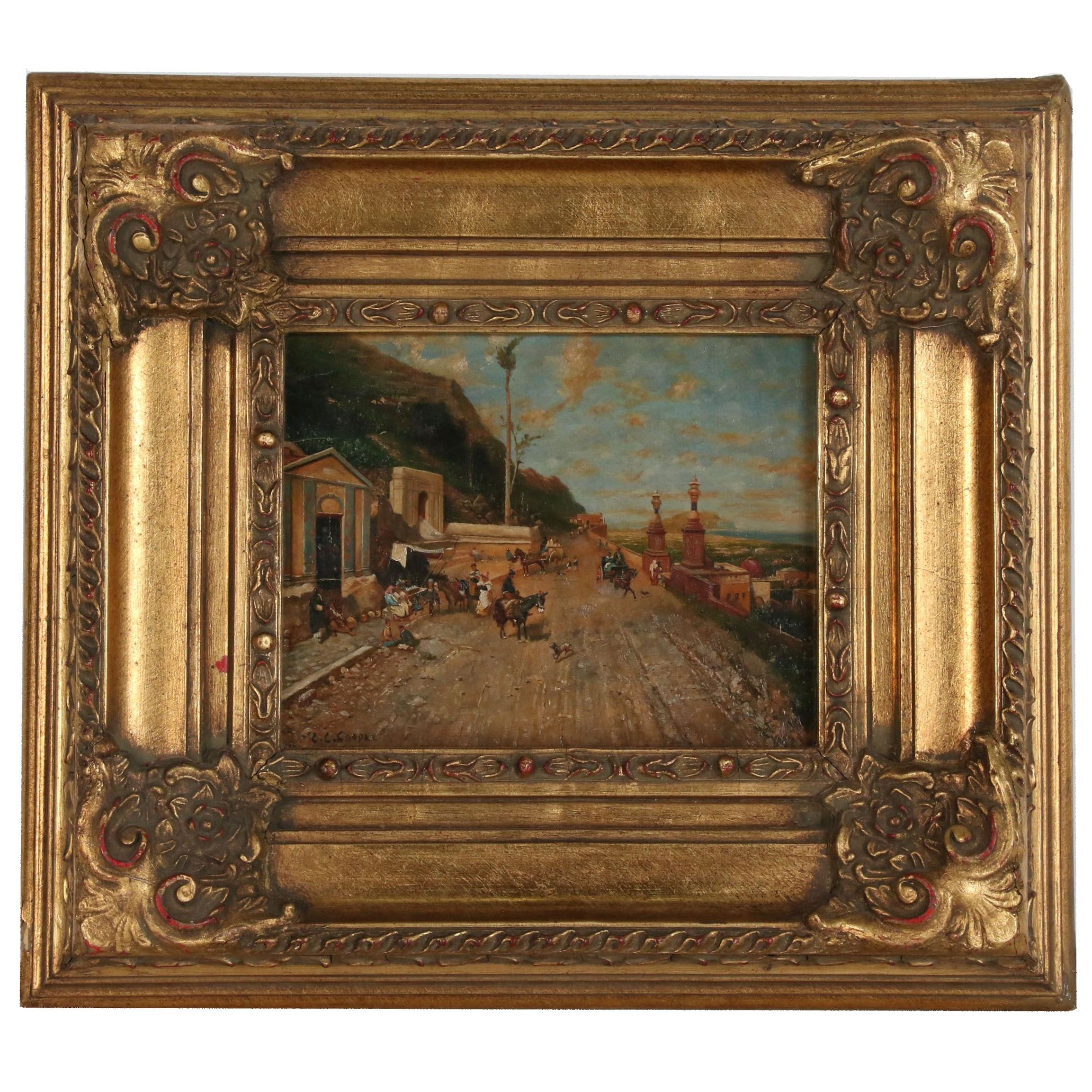 Oil Painting Of A Rustic Mediterranean Market Scene Signed Oil