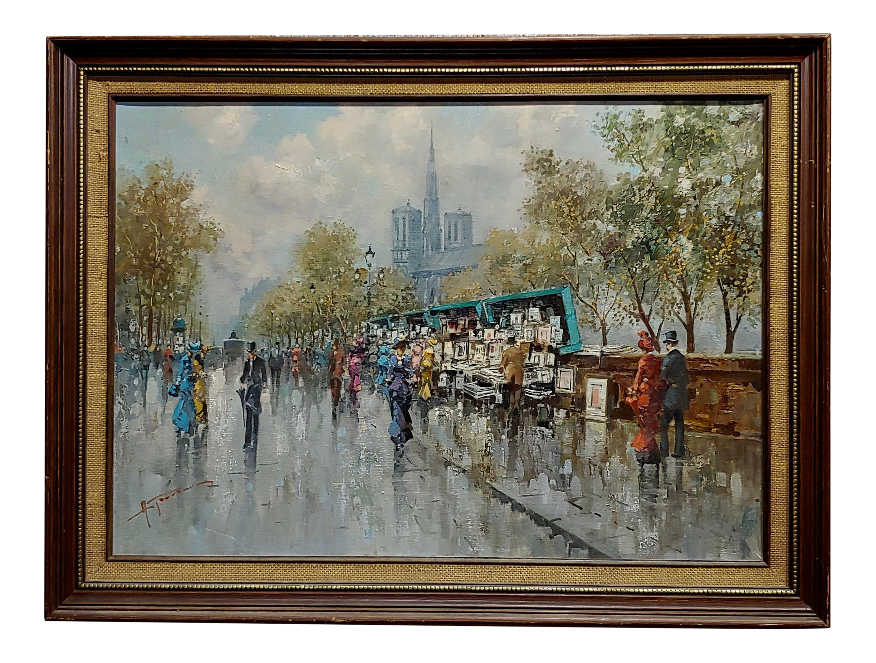 Unknown Artist Paris Street Scene Stretched Canvas Painting For Sale Paintinghere Com