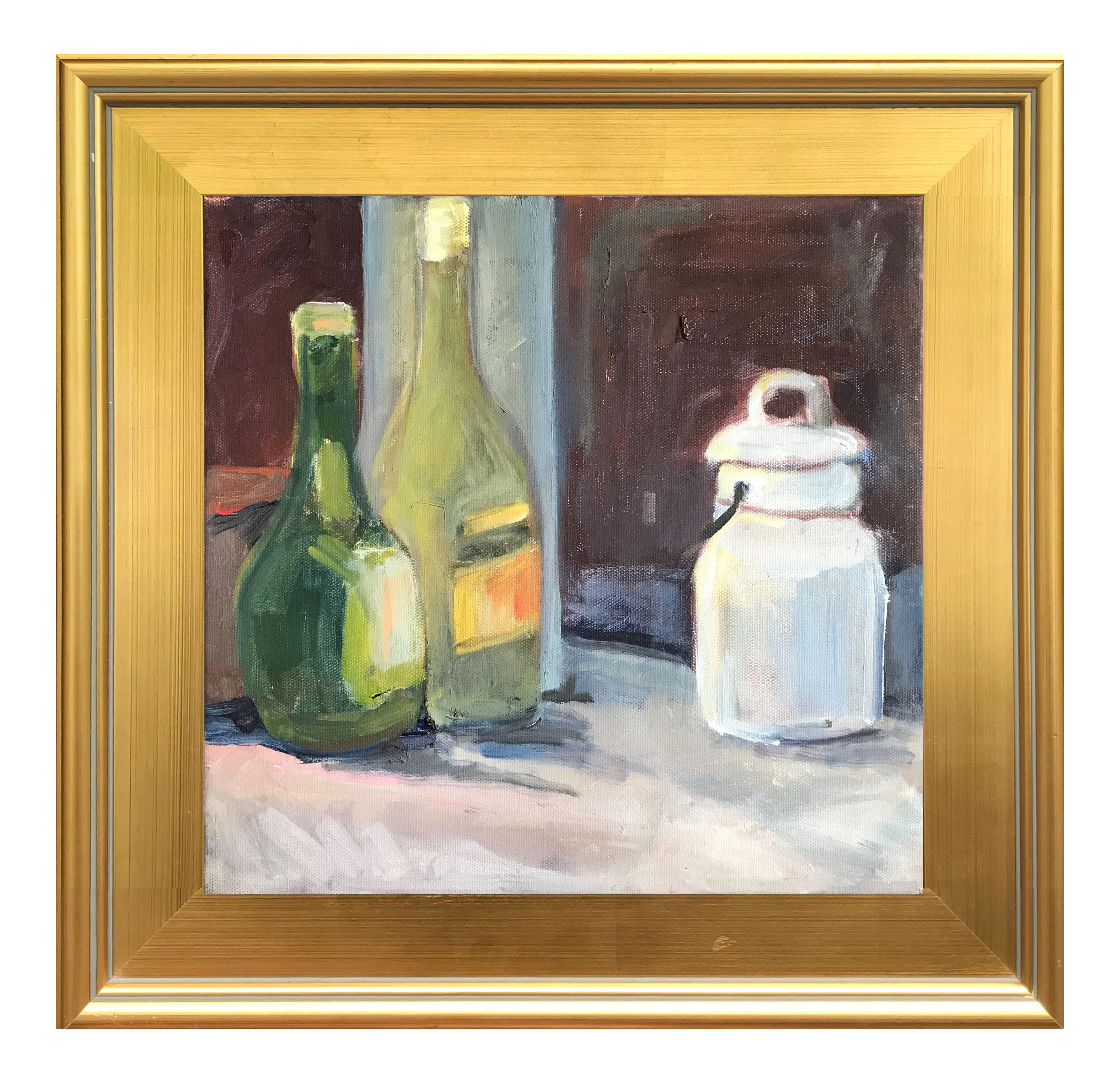 Wine Bottle With A Corkscrew Original Still Life Oil Painting Art
