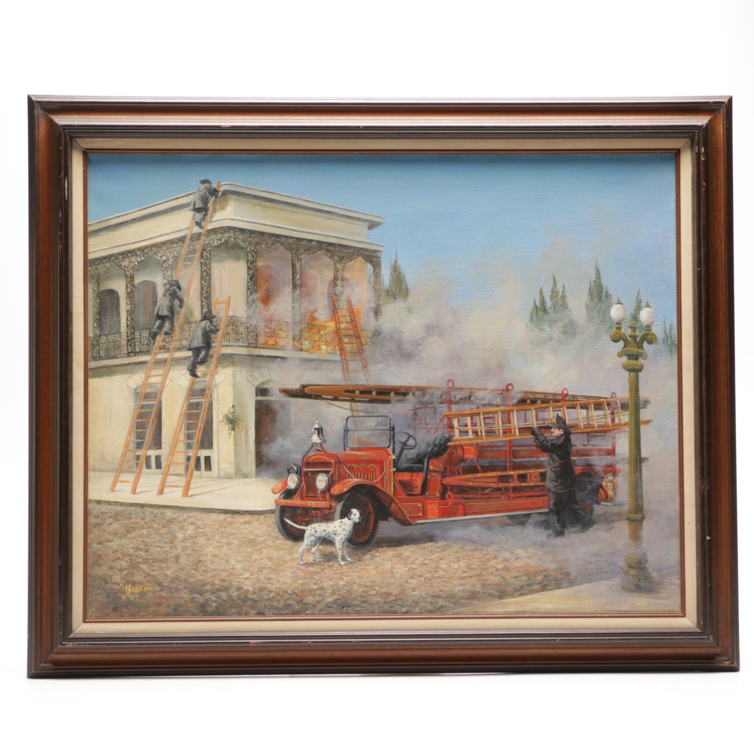Fire Painting With Tiny Truck Escaping Oil On Canvas 24x36in