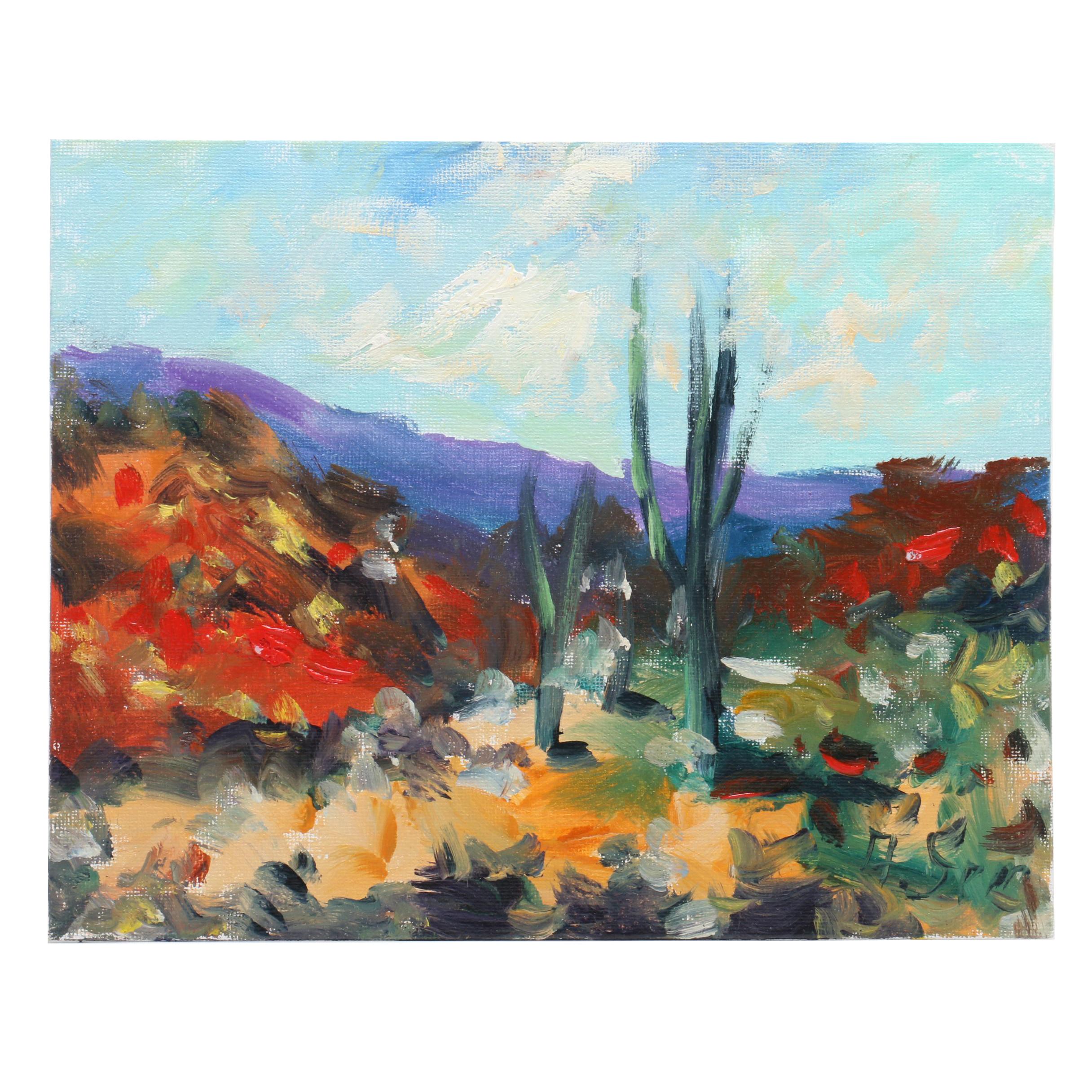 Andrew Semberecki Landscape Oil Painting Of Desert Scene Ebth