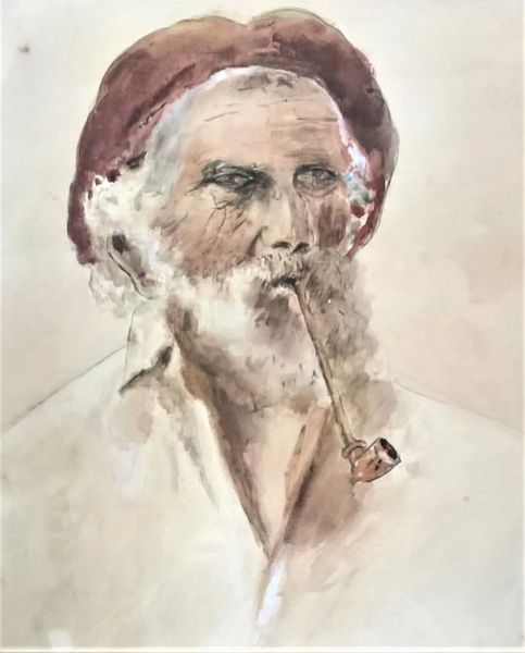 Luke 20th Century Old Man Smoking Pipe Oil On Canvas