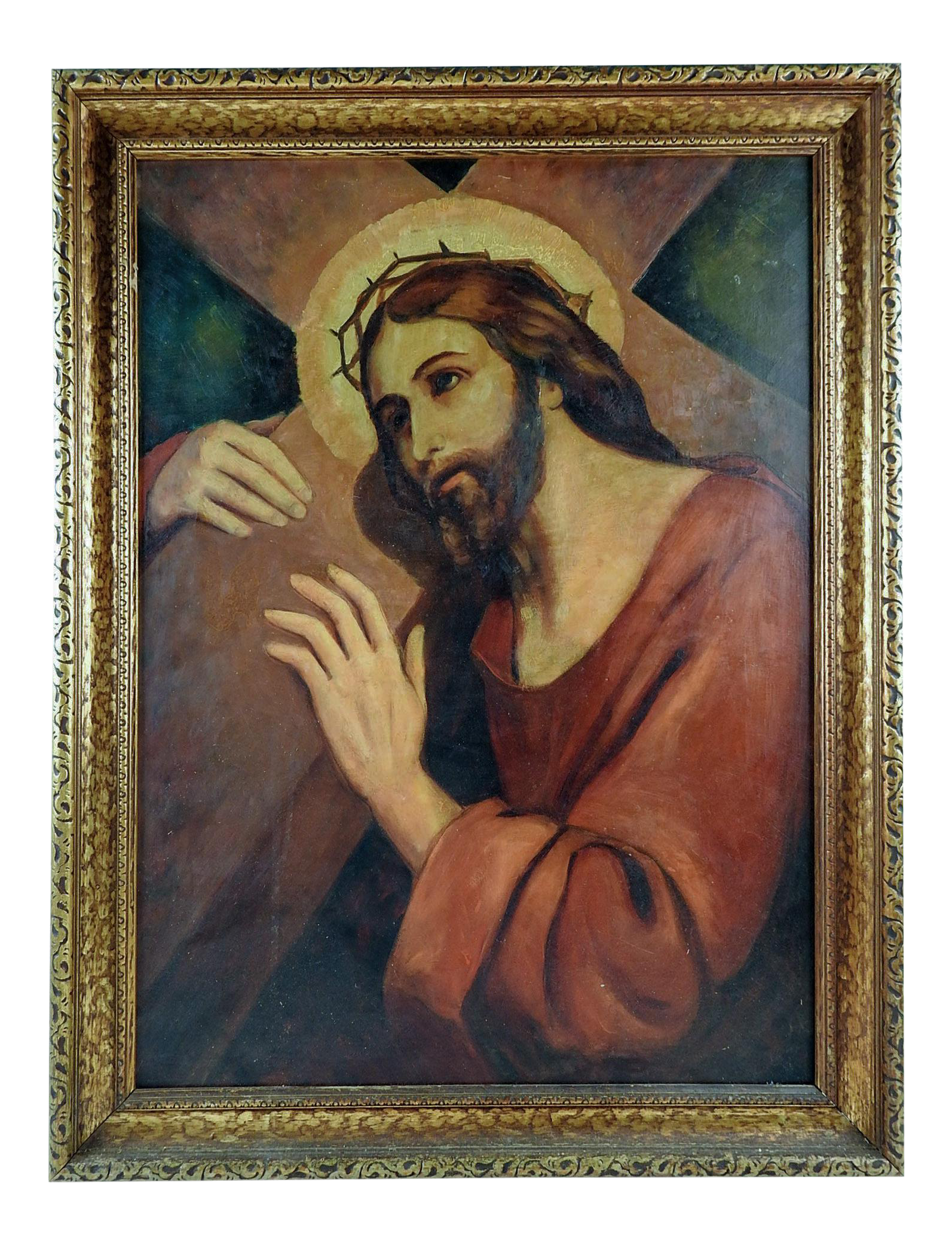 Old Master Art Portrait Jesus On Crucifixion Oil Painting Unframed