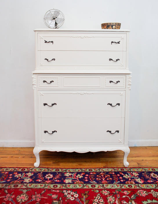 White Antique Highboy Dresser French Provincial White Dresser
