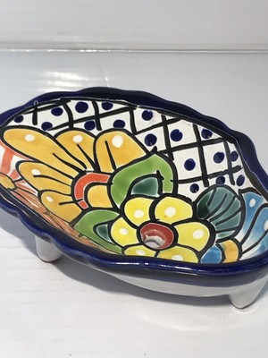 Mexican Talavera 2 Piece Soap Dish Colorful Calla Lily Sunflower