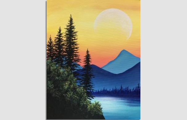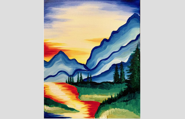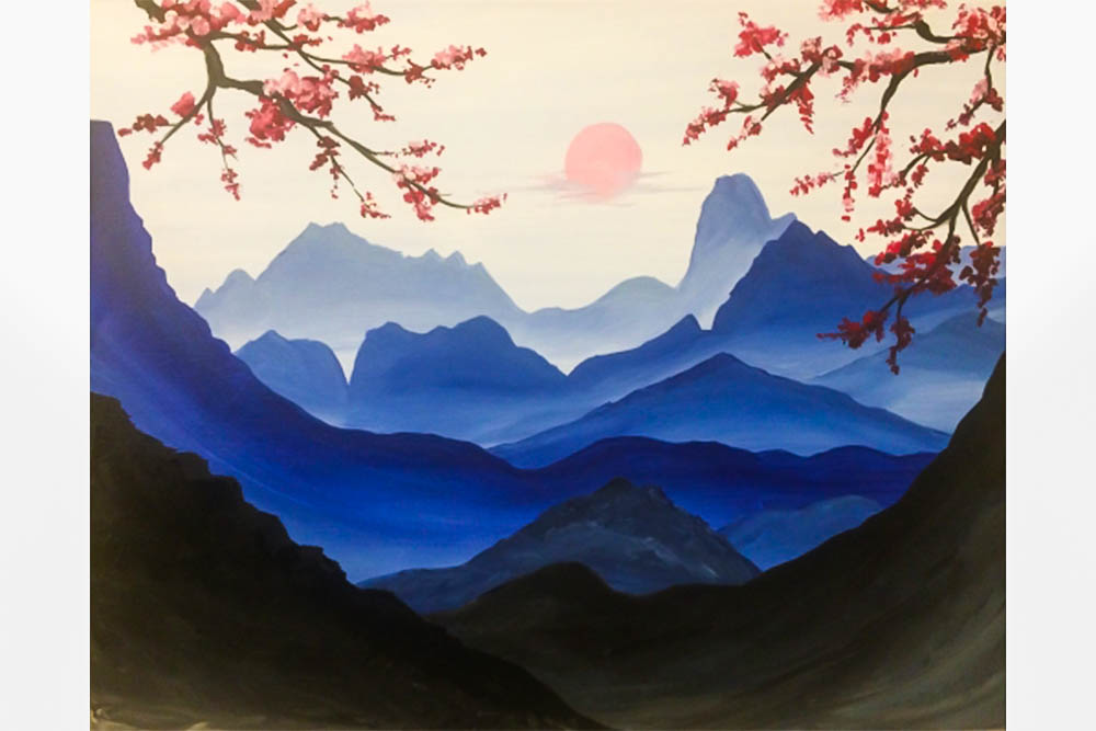 Paint Nite Misty Blue Mountains Painting Classes Chicago Coursehorse Yaymaker