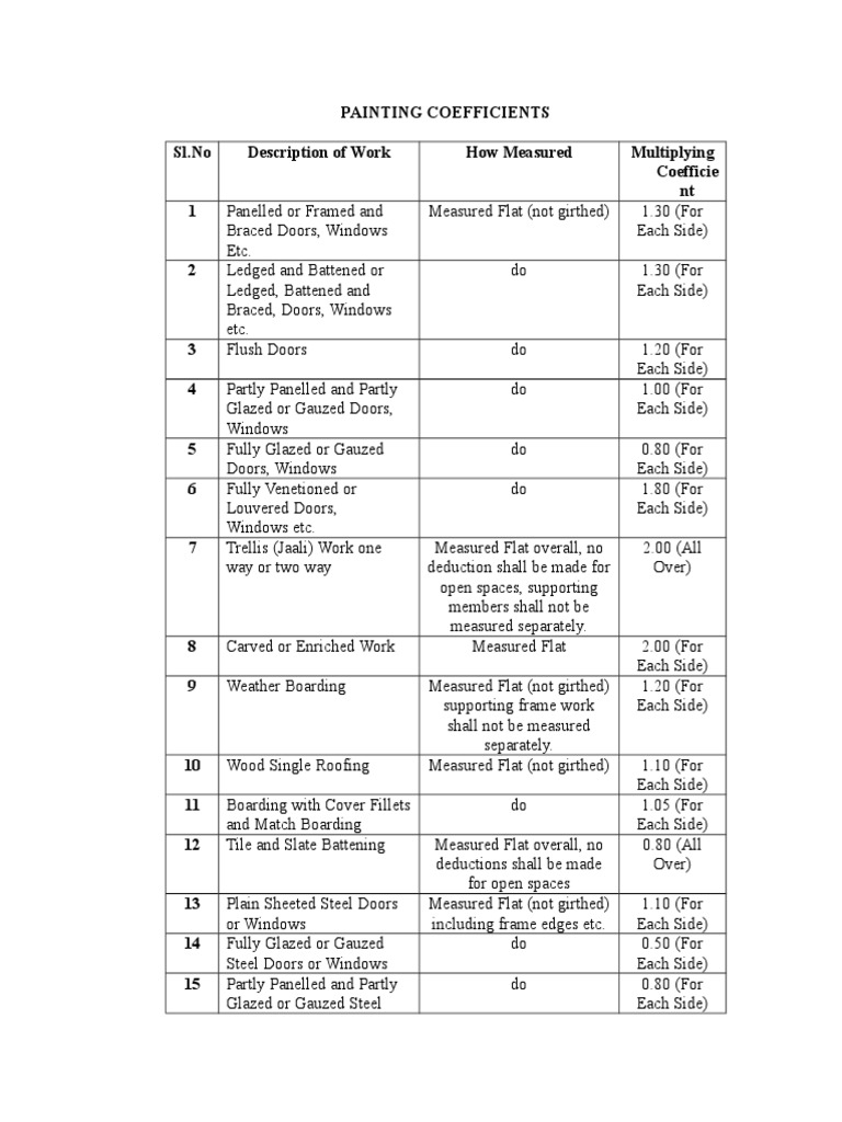 Painting Coefficients Window Door