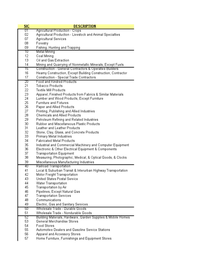 The Complete List Of United States Sic Codes 2019