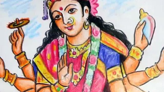 Easy Durga Maa Drawing With Painting Art Acrylicpainting Painting Durgapuja Durgapainting Durga Painting Drawings Painting
