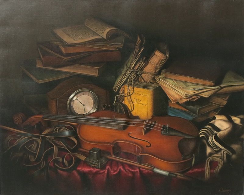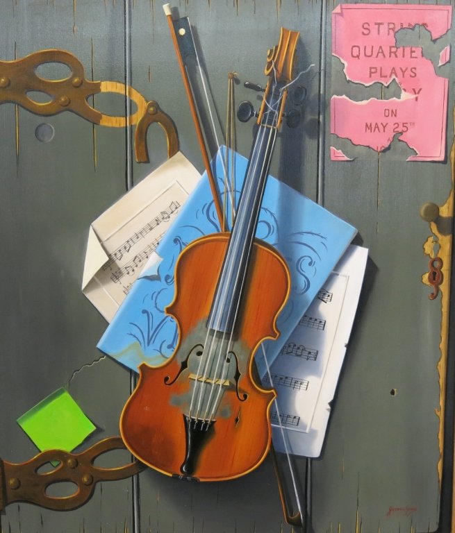 Musical Instrument Oil Painting Of Violin Antique Style High Grade