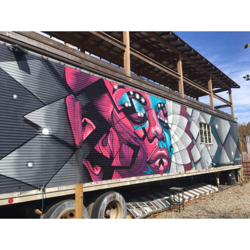 Denver Mural Artist Spray Painted Design In Office On Corrugated