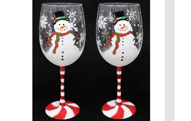 Amazon Com Hand Painted Snowman Stemless Wine Glass Handmade