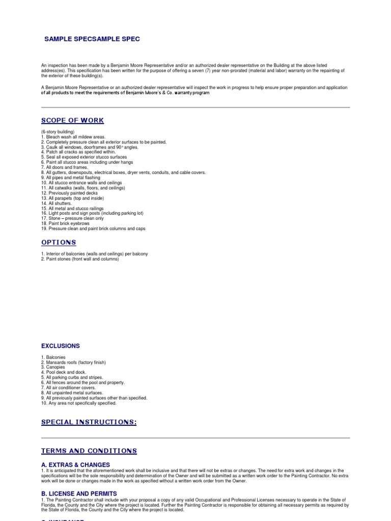 Painting Contractor Warranty Forms For Labor
