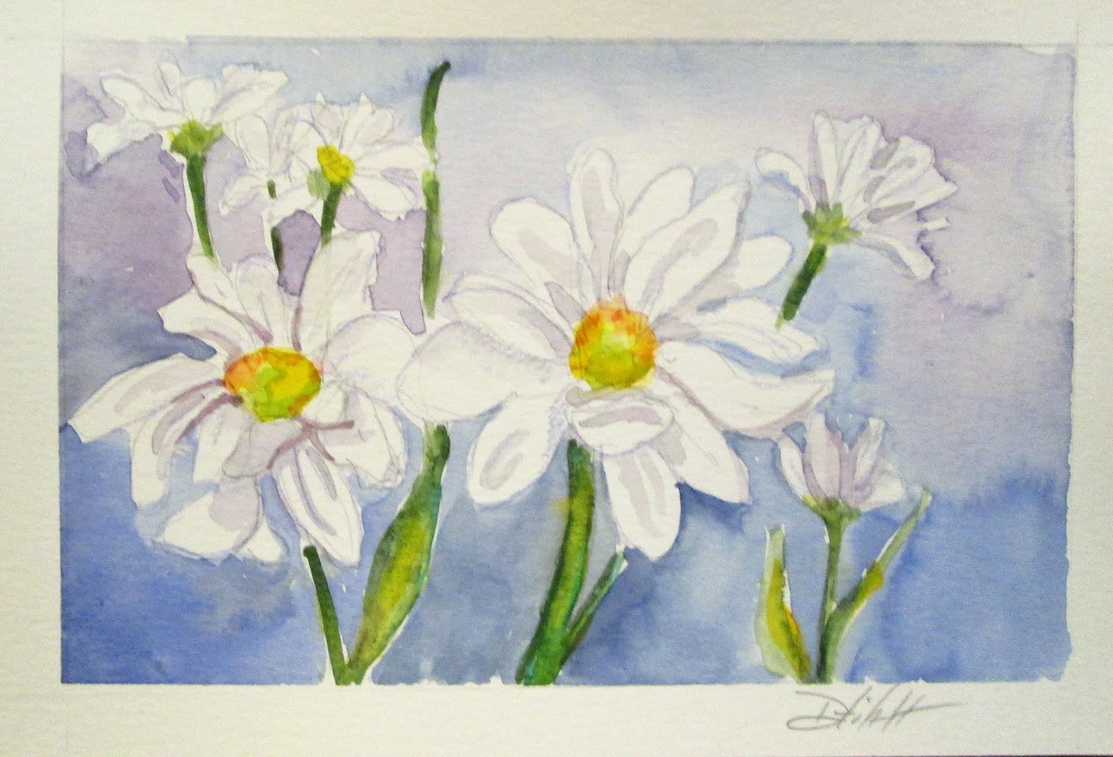 Yellow ochre french ultramarine blue burnt sienna burnt umber and purple madder. Lavender is an easy flower to paint because it doesnt require much mixing of the paint. The conventional way of painting white flowers in watercolor is to paint the negative space surrounding the flower. First create a grid made up of four columns and six rows on a sheet of cold pressed paper.