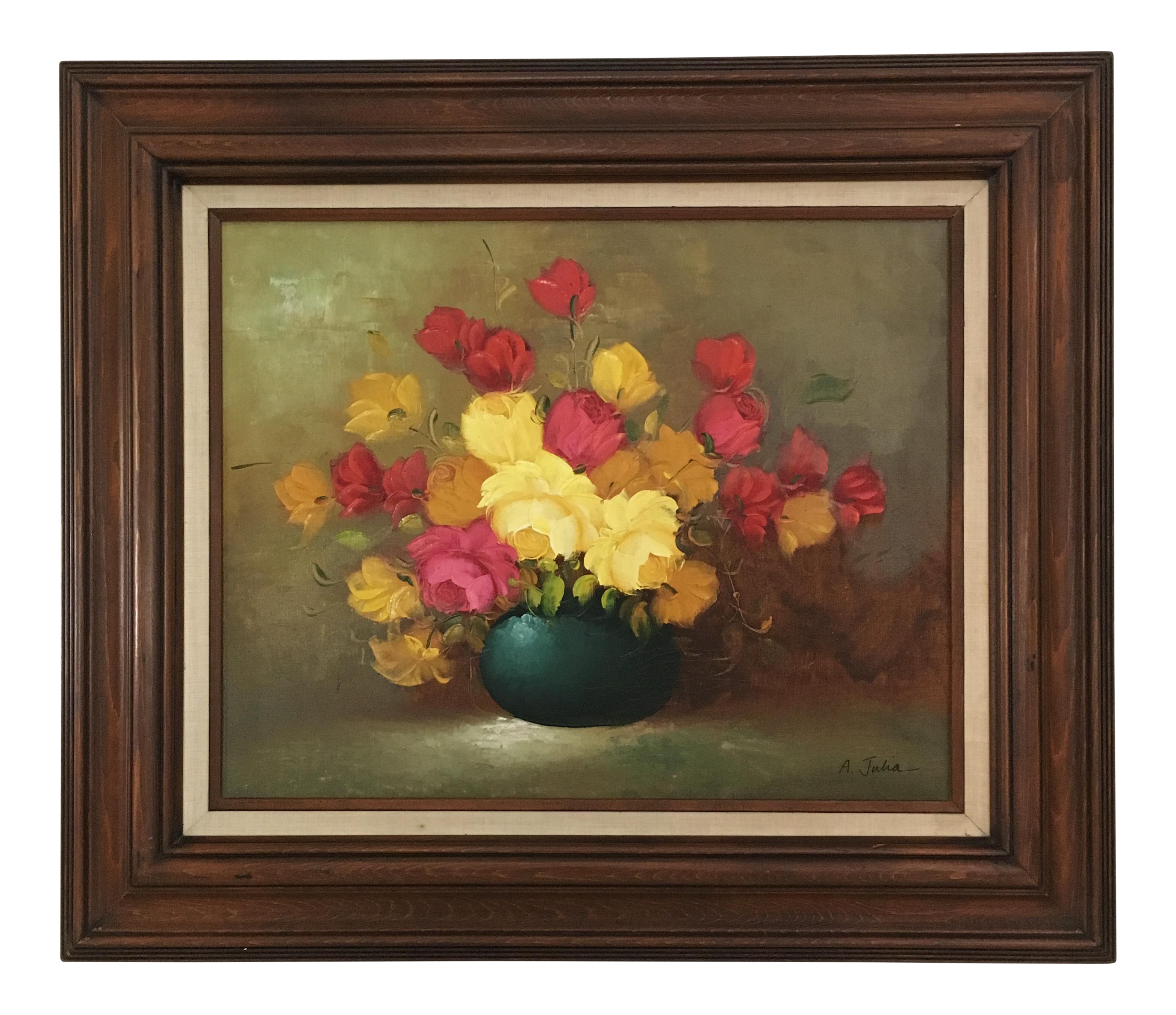 Original Framed Floral Still Life Oil Painting By A Julia Chairish