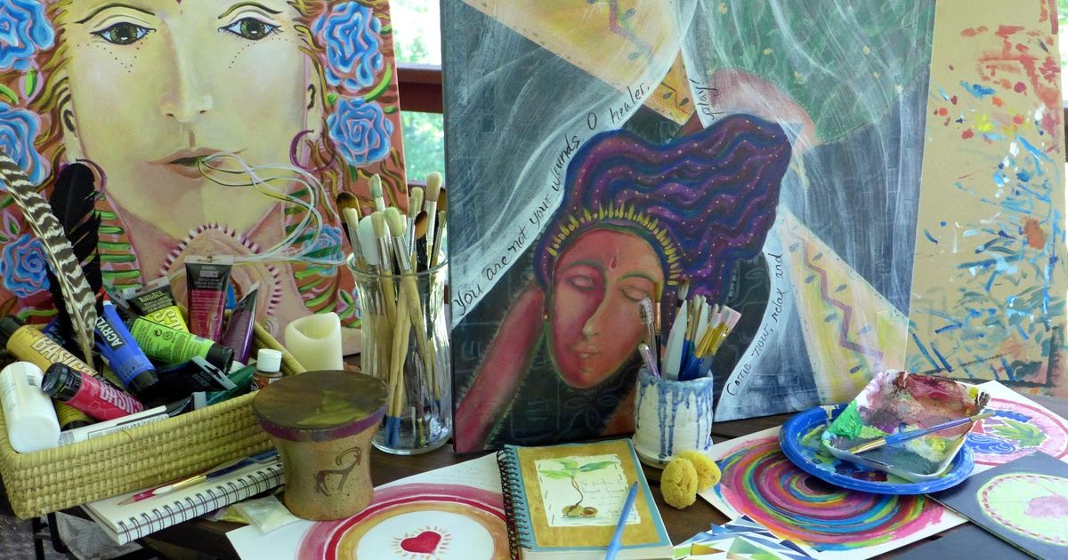 Woman Writing In A Green Dress Art Uk